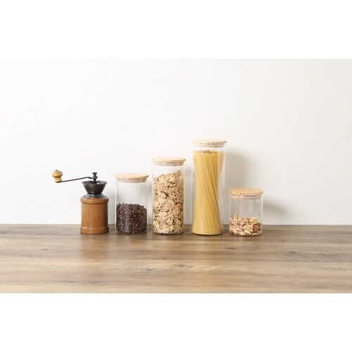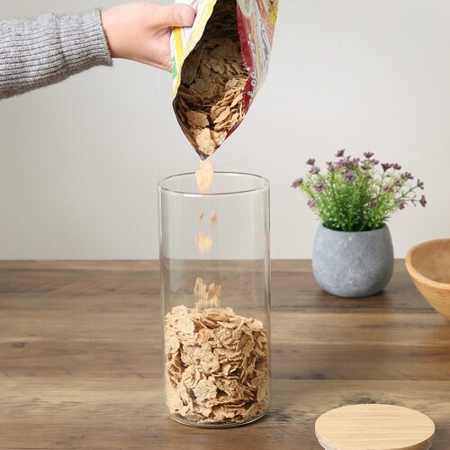 木蓋がおしゃれなガラスキャニスター1.3Lです。 ナッツ類やパスタ、シリアル、昆布、コーヒー豆などの乾物の保存に最適です。 食品を入れるのはもちろん、小物を入れて見せる収納としても使えます。 |