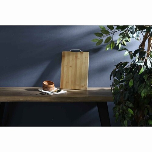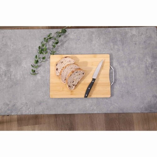 竹材とアルミの組み合わせがおしゃれで可愛いカッティングボードです。 材質が竹なので、カッカッと鳴るバンブーならではの音も楽しめます。 サービストレイとしてそのまま食卓に出せるので、洗い物も減らせます。 |