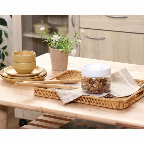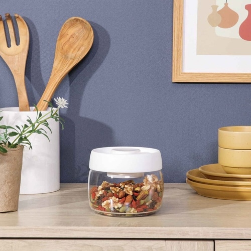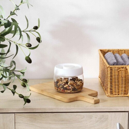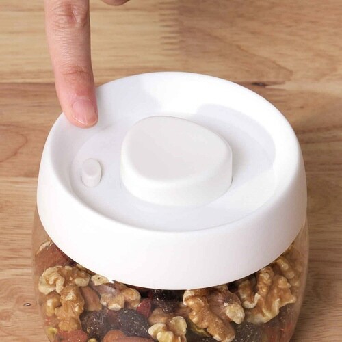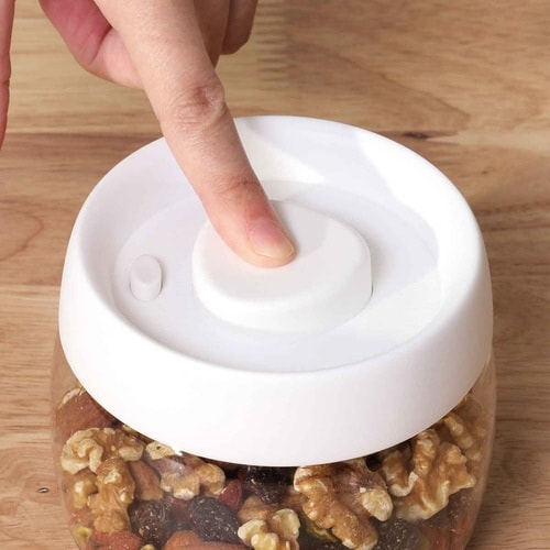 フタについているボタンをプッシュして真空状態をつくれるキャニスター400mlです。 空気が抜けることで酸化や湿気を防ぎ、風味や品質を長く保つことができます。 |