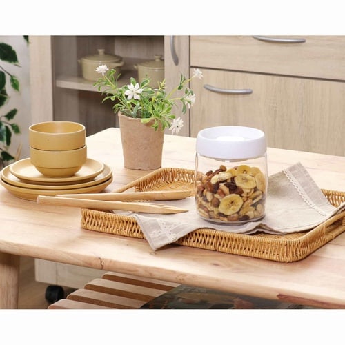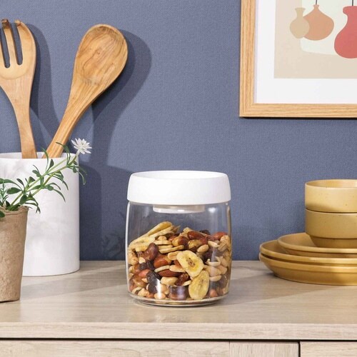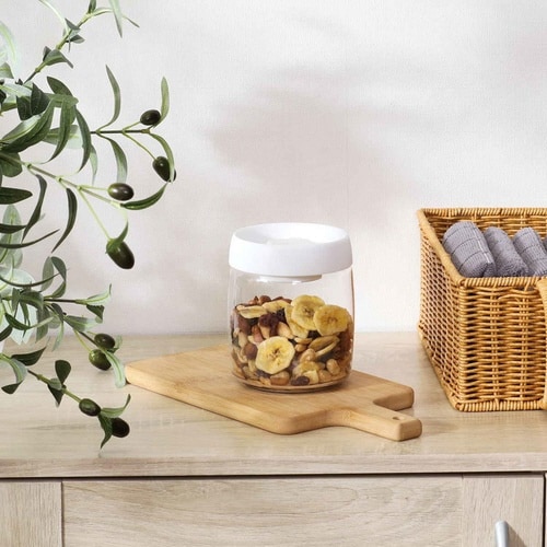 フタについているボタンをプッシュして真空状態をつくれるキャニスター800mlです。 空気が抜けることで酸化や湿気を防ぎ、風味や品質を長く保つことができます。 |