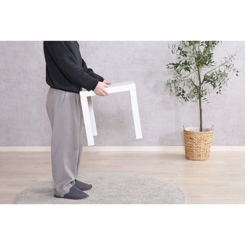 キューブ型のコンパクトな可愛いテーブルです。 ちょっと置くのに丁度いいサイズ感です。 持ち運びが簡単です。 脚がしっかりしていて安定しています。 脚裏に傷防止が付いています。 |