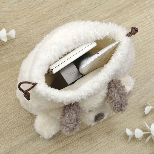 巾着ポーチ アニマルポーチ 巾着型 ぬいぐるみ イヌ ※3個以上から注文可能(販売価格は1個単位の価格)