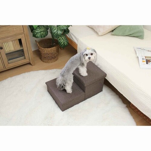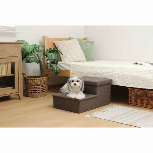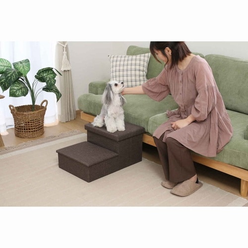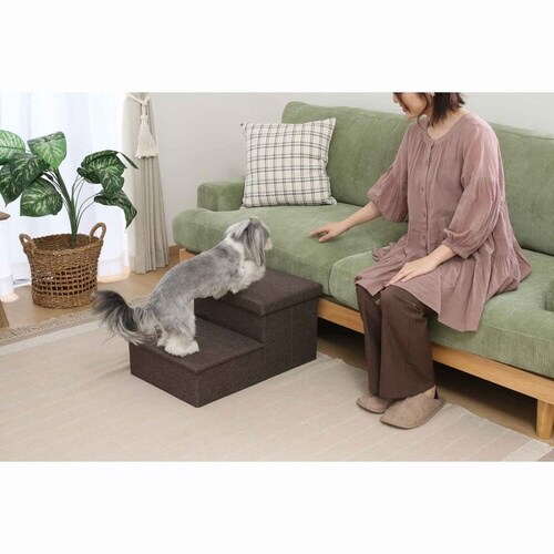 ペットの足腰の負担を軽減する、2段ペットステップです。 お部屋のインテリアに馴染むデザインです。 ステップの中は便利な収納スペースとして活用できます。 |