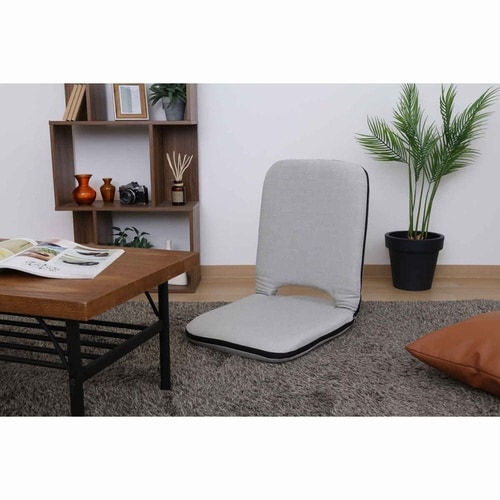 スッキリとしたシルエットの座椅子です。 大きくて掴みやすい取っ手付きです。 パタっと折りたたんで収納できます。 背もたれはKOYO製14段ギアを採用しています。 |