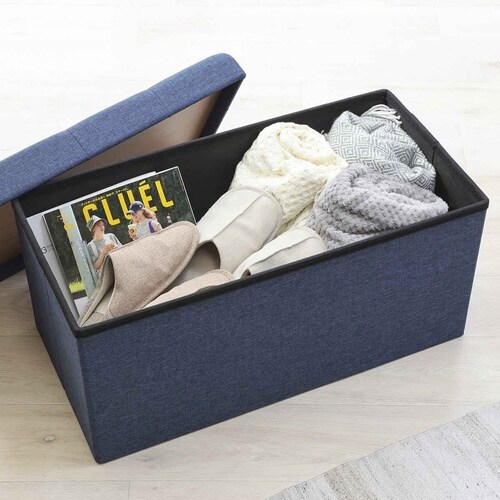 収納スツール ベンチタイプ テーブルにもなる収納スツール ネイビー