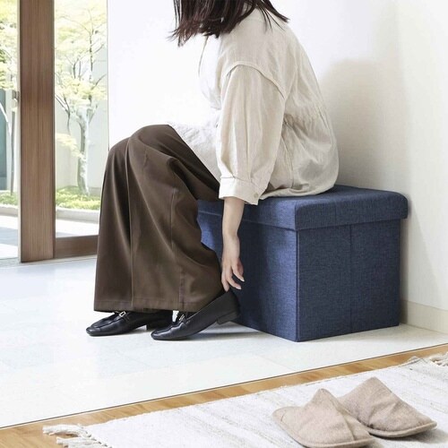 シンプルなデザインの収納スツールです。 スペースを上手く使えて便利な1台3役です。 蓋を外すと収納スペースになっています。 玄関で靴を履く時や来客時の椅子として活躍します。 耐荷重は約80kgです。 |