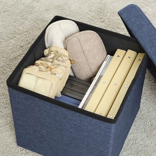 収納スツール 座面正方形タイプ テーブルにもなる収納スツール ネイビー ※2個以上から注文可能(販売価格は1個単位の価格)