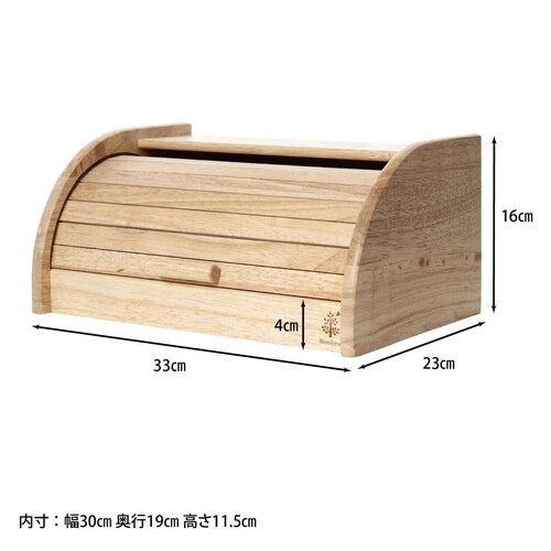 シンプルで使いやすい木製のブレッドケースです。ホコリを防ぎ、ごちゃつきがちなキッチンのパン類をすっきりまとめることができます。 |