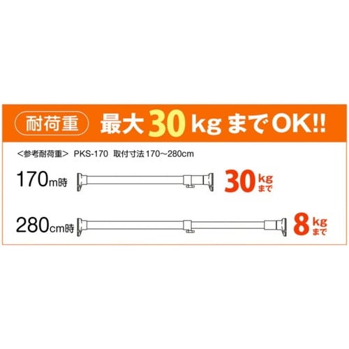 突っ張り棒 取付幅:170から280cm L 強力 ステンレスポール ※2個以上から注文可能(販売価格は1個単位の価格)
