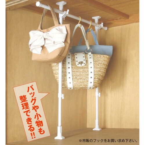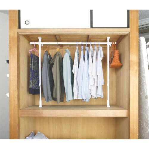 押入れにハンガーかけができる突っ張りクローゼットハンガーです。 ネジを使用しない突っ張り式です。 クローゼットの下方のデッドスペースにもおすすめです。 幅をとりたくない場合は縦向きにもできます。 |