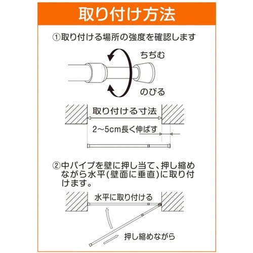 幅広いテイストに馴染むシンプルな突っ張り棒です。 家の中のデットスペースを利用して収納力をアップできます。 壁に穴をあけないので、賃貸住宅でも手軽に収納スペースを増やせます。 |