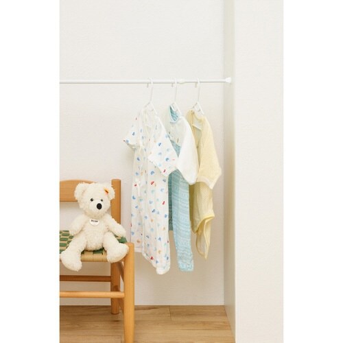 インテリアに馴染むシンプルなデザインの突っ張り棒です。 両端のキャップは外せます。 カフェカーテンを掛けたり、デットスペースを利用して収納力をアップできます。 |