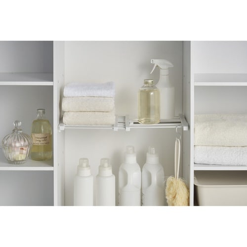縦にも横にも便利に使える突っ張り棚 ワイド特大サイズです。 家具を傷つけない突っ張り式です。 デッドスペースなっている隙間に棚を作り、便利にお使いいただけます。 |