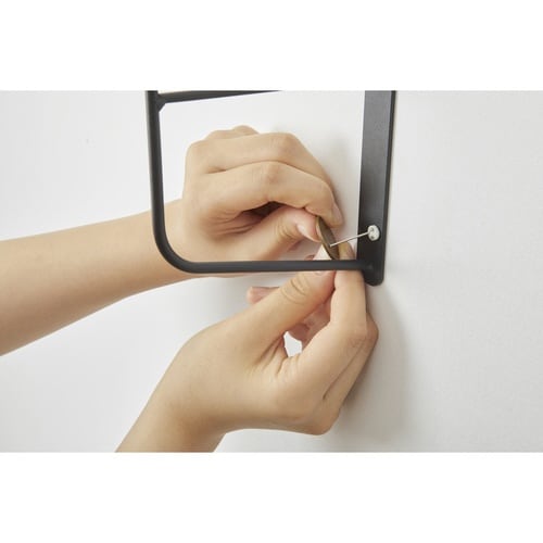 壁を大きく傷つけずに簡単に棚が作れる ミニマルなデザインで「見せる収納」 1×6材にジャストフィットするサイズ 本体の設置幅と使用荷重 ベニヤ板など木の壁への取付方法 |