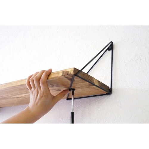 壁を大きく傷つけずに簡単に棚が作れるDIYアイテムのトライアングルフレームSです。 ミニマルなデザインで「見せる収納」につかえます。 木箱も設置できるトライアングルパーツです。 |