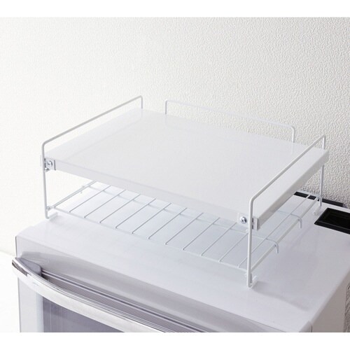 レンジの上が収納スペースに カウンターもスッキリ 2段式でたくさん収納 3方向のガード付き 組み立て簡単、置くだけ |