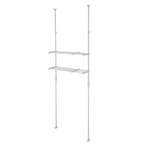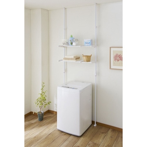 ラック全体の幅・高さ・棚の高さを調整できる、伸縮式の突っ張りランドリーラックです。 棚の高さは、199から265cmまで伸縮ができます。棚の幅は、63から93cmまで伸縮ができます。 |