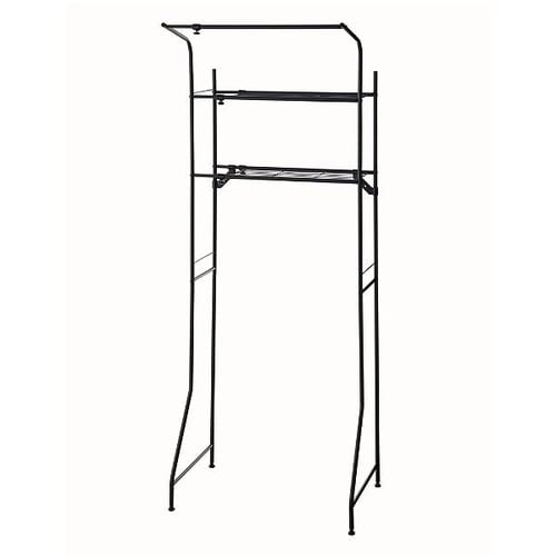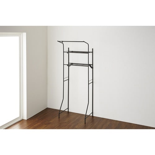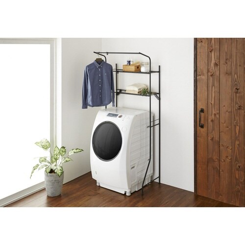 洗濯機の上のデッドスペースを有効活用して収納を増やすことが出来る洗濯機ラックです。 シンプルなデザインのラックなので他のアイテムとも合わせやすいです。 棚2段に便利なハンガー掛けが付いています。 |
