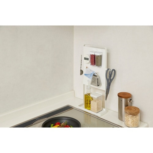 奥行スリムで、コンロ前やサイドのちょっとした隙間にも設置できるキッチンラックです。 デッドスペースを活用し、キッチンがすっきり整います。 |