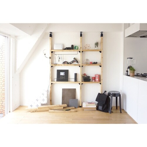 特別な技術がなくても安全で簡単に利用できるDIY収納パーツ「ラブリコ」シリーズの専用棚受けです。 同じシリーズのアジャスターで作った柱に取り付けて棚を作ることができます。 |
