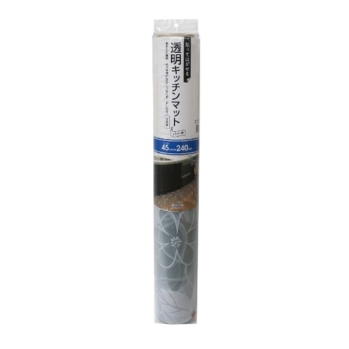 キッチンマット 拭ける 45×240cm 柄物 クリア フラワー