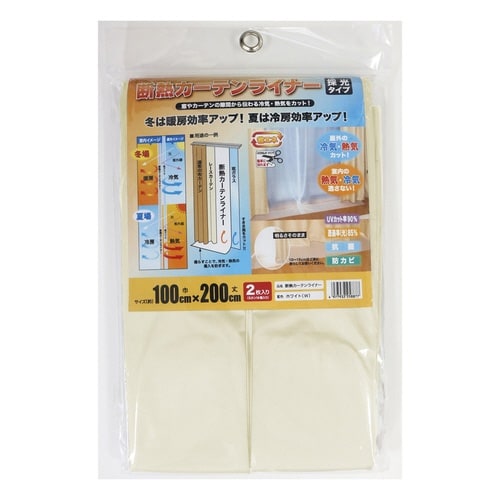 断熱カーテン 断熱カーテンライナー 幅100cm×丈200cm 2枚入 ホワイト ※2個以上から注文可能(販売価格は1個単位の価格)