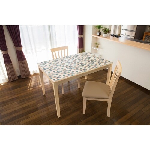 テーブルデコレーション 貼ってはがせる 90cm×150cm テーブルクロス 木目調 タイル柄 撥水加工 ビニール 日本製 モロッコタイルブルー