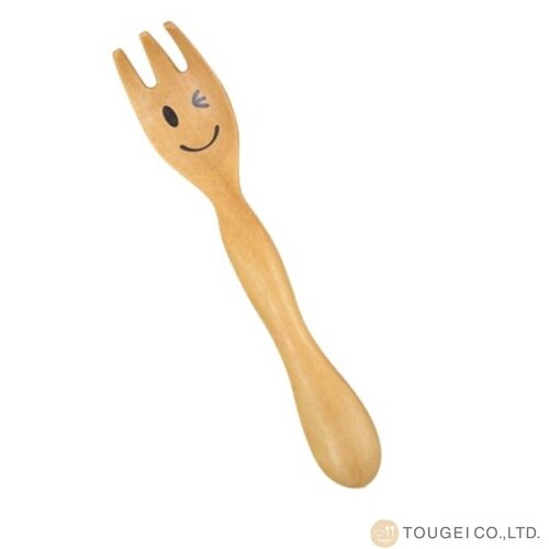 フォーク 14cm キッズフォーク ニコニコ&ウィンク 木製 サオ 籐芸 ウインク ※5個以上から注文可能(販売価格は1個単位の価格)