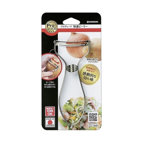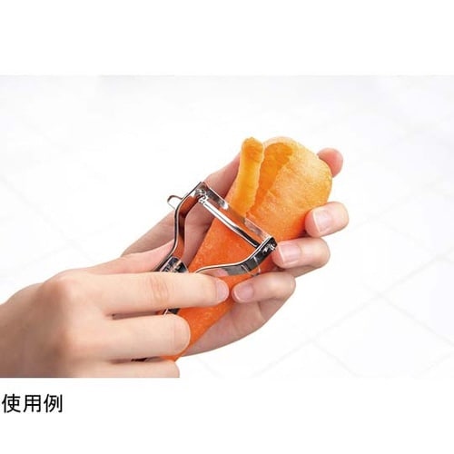 カーブ刃が野菜の面にぴったりフィット大根や人参などの皮を薄くスピーディにむけます。国産刃使用。 |