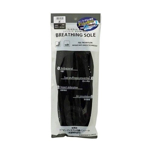 世界初のエアポンプを内蔵したインソールです。踵部分のポンプが歩くたびに靴内の空気を循環させ、足むれを解消します。抗菌、防カビ加工を施しておりますので作業靴、長靴などでおすすめです。米国特許品。 |