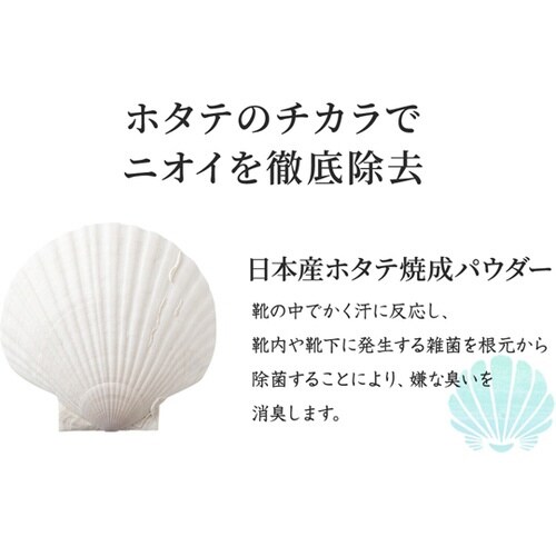 日本産ホタテの貝殻を使った自然派靴用消臭・除菌パウダーです。 |