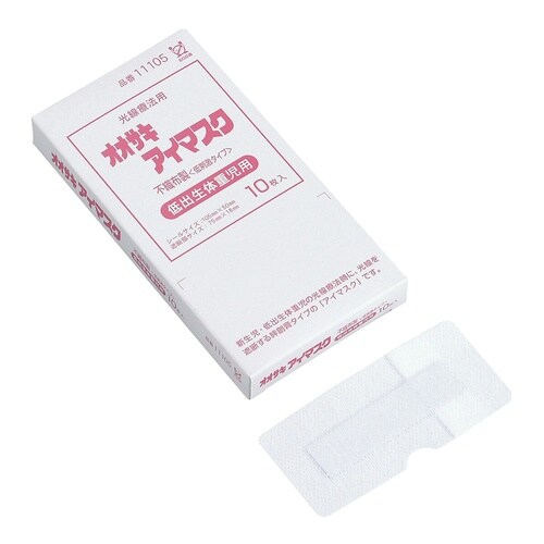 高ビリルビン血症の光線療法時に使用する絆創膏タイプの不織布製アイマスクです。中間層のアルミ箔が、光線を遮断します。ゲル粘着剤を使用しているため、肌がかぶれるのを抑えます。 |