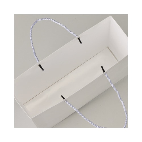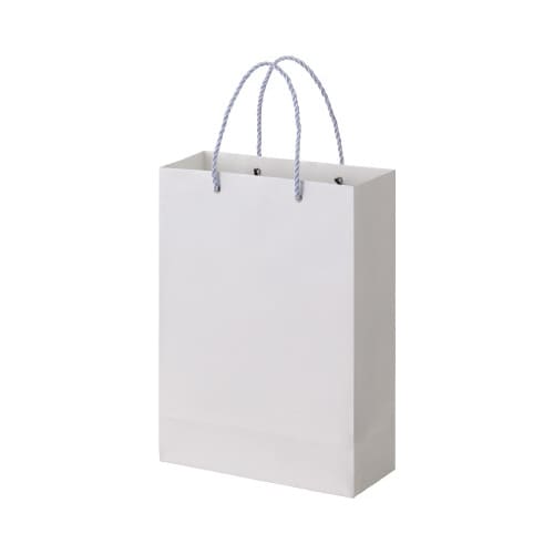 表面がポリエチレンでラミネートされているので雨などの水濡れに強い紙手提げ袋です。お客様へのお渡しや営業の持ち運びなどシーン問わず使いやすいシンプルな白無地デザインです。 |