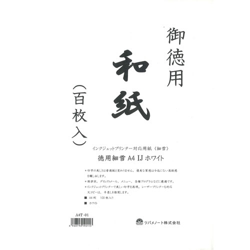 A4サイズの細雪(ササメユキ)という和紙です。カラーはホワイト。徳用の100枚入りです。 |