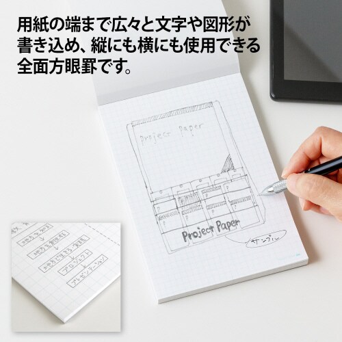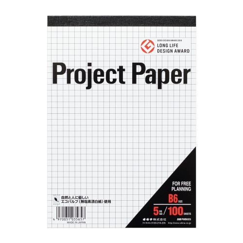 プランニング用紙のパイオニア。プロジェクトペーパーは考案する、投影する、具体化する、はっきり伝えるための多目的用紙。コピーに写りにくく、目にも優しいブルー罫を採用。書き味にも定評があります。