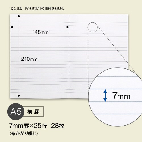 サイズ:タテ210×ヨコ148×厚み3(mm) | 製本様式:糸綴じ | 枚数:28 | 紙質:上質紙 | 罫内容:普通罫ヨコ7mm25行通し罫 | …