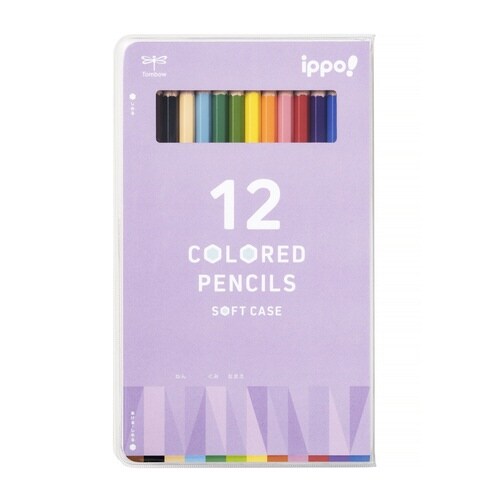 フタを折り返して机を広く使える!落としても大きな音がしないソフトケース入り色鉛筆12色 |