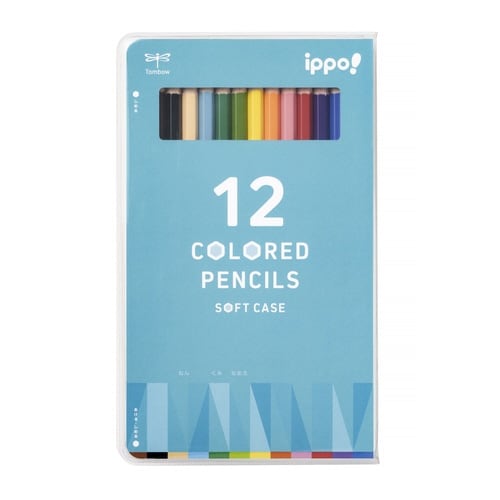 フタを折り返して机を広く使える!落としても大きな音がしないソフトケース入り色鉛筆12色 |