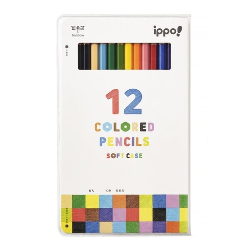 フタを折り返して机を広く使える!落としても大きな音がしないソフトケース入り色鉛筆12色 |