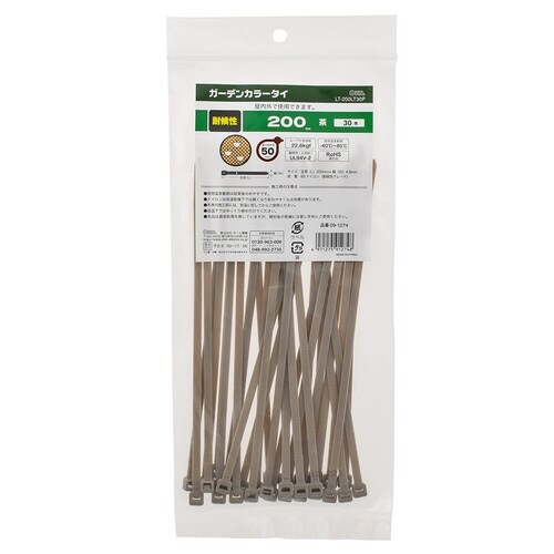 オーム電機 ガーデン色タイ 耐候性 200mm 30本入 茶 9308-4376