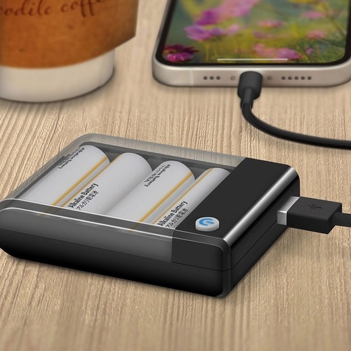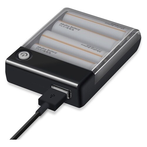 お手持ちのケーブルを使用してスマートフォンに充電できる最大出力1AのUSBポート搭載乾電池式充電器 |