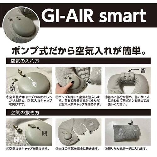 口をつけずにポンプを押すだけでふくらむネックピロー。持ち運びしやすいポーチ付き。出張・旅行・仕事の合間に。 |