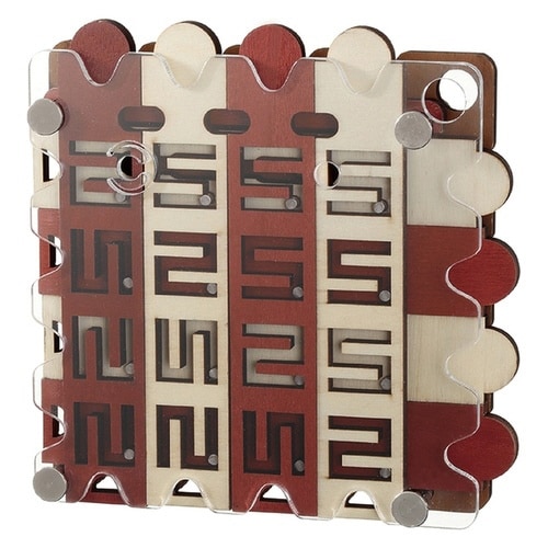 縦横のバーをスライドさせ、後ろに隠れている球を取り出す迷路系パズルです |