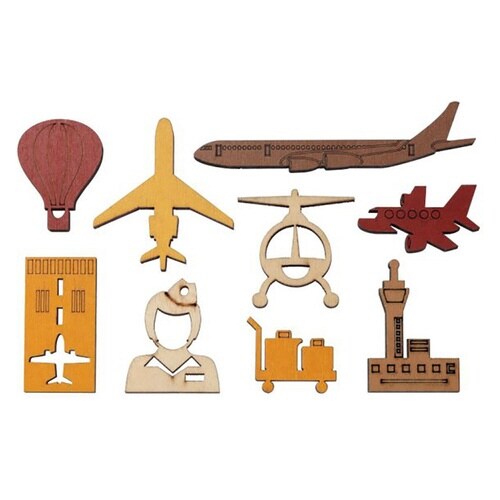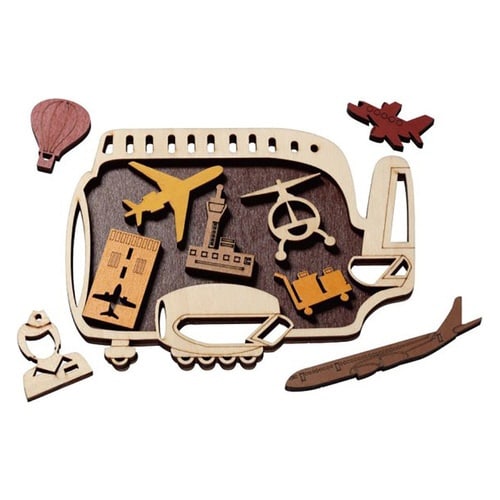 空港をモチーフにした木製ピースを9個積めるパズル |