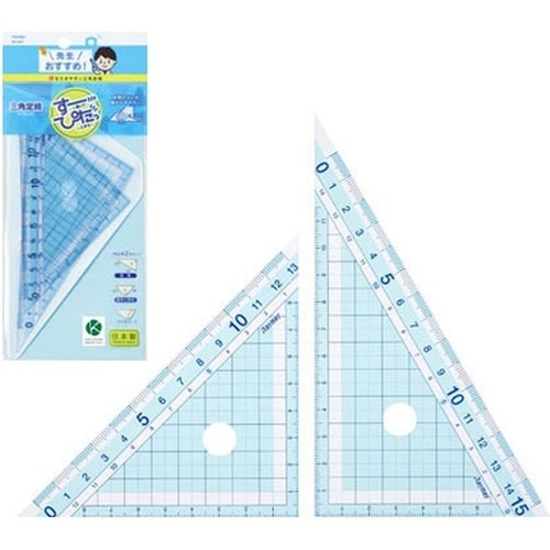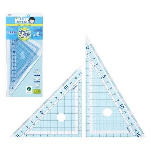 現場の先生と共同開発した、学習しやすい定規。裏面の滑り止めは軽く抑えるとピタッと止まる特殊印刷加工。 |