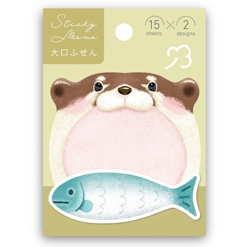 材質:紙 | 柄:かわうそ | 枚数:15枚×2柄 計30枚入 | 付箋サイズ:大:W70×H70mm、小:W70×H25mm | 単位:1セット(1…