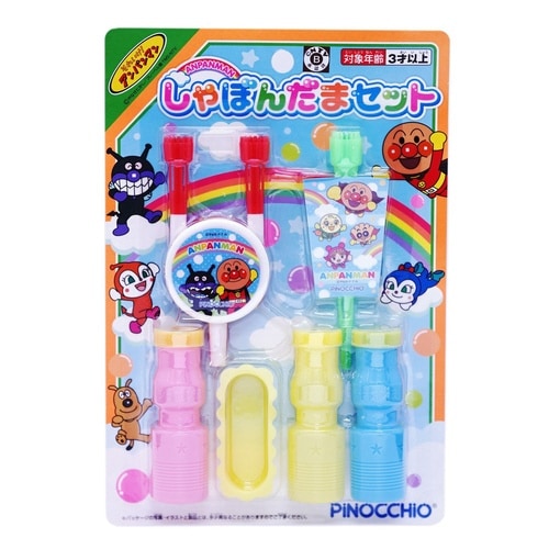 お子様に大人気のアンパンマンシャボン玉セット。吹き棒は、1本タイプと2連タイプの2種で楽しめます。 |