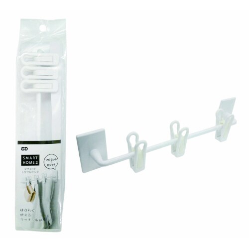 冷蔵庫などマグネットが付く面なら簡単に取り付けできて、小物をはさんで収納できます。 |