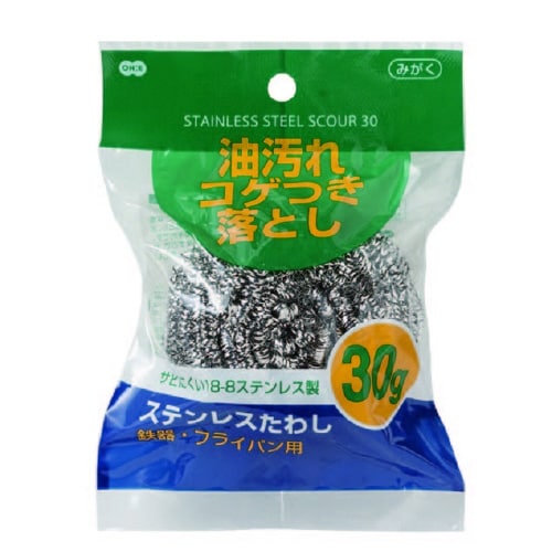鉄器・フライパンなどのがんこな油汚れ、コゲつきを素早く落とし、水切れ、乾きが早いので衛生的です。 |