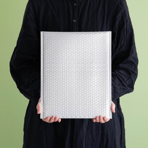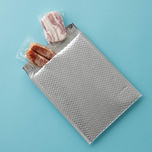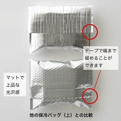 マットシルバーの無地保冷バッグです。エア緩衝材が商品を保護し封緘テープ付で簡単に封止めができます。